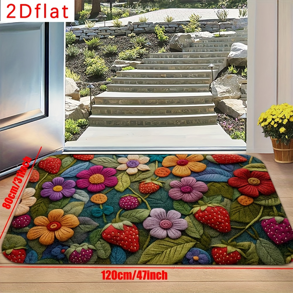 TEMU 1개 플로럴 웰컴 현관 매트 - 생생한 패턴, 세탁기 사용 가능한 폴리에스터, 1.2cm 두께 스펀지 카펫, 실내/실외 사용, 침실, 욕실, 주방, 실내외 매트에 적합 | 생생한 디자인 | 세탁기 사용 가능한 매트