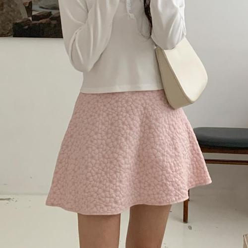 [미라클세븐]에이라인 꽃치마 엠보싱 스판 살랑 훌스커트 숏기장