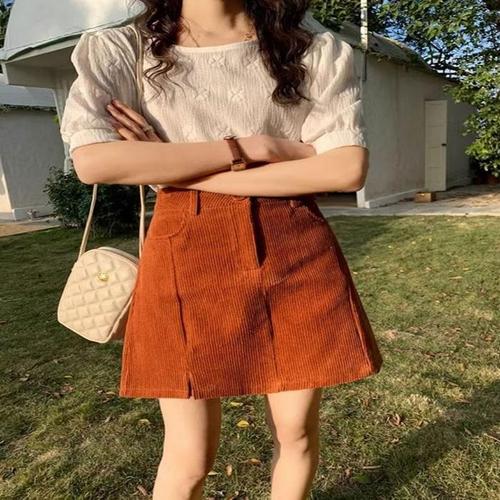 [BZJLG5GI_4C]여자 데이트룩 코듀로이 A라인 미커트