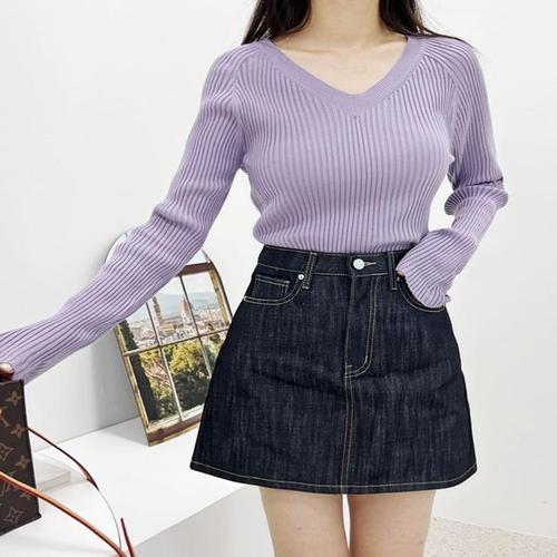 [BZJLOMOV_51IB]여성 미커트 생지 A라인 청스커트