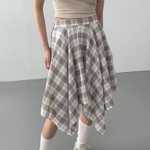 [셀러허브_여성트랜드패션]ONM 여자 하이웨스트 모직 A라인 체크 치마 미커트