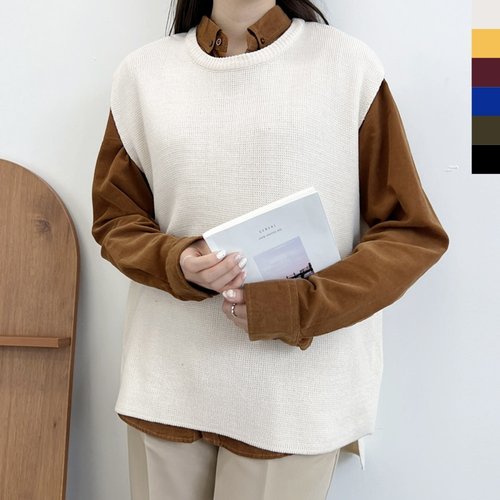 울 리본핏 루즈 니트 조끼 (one color)