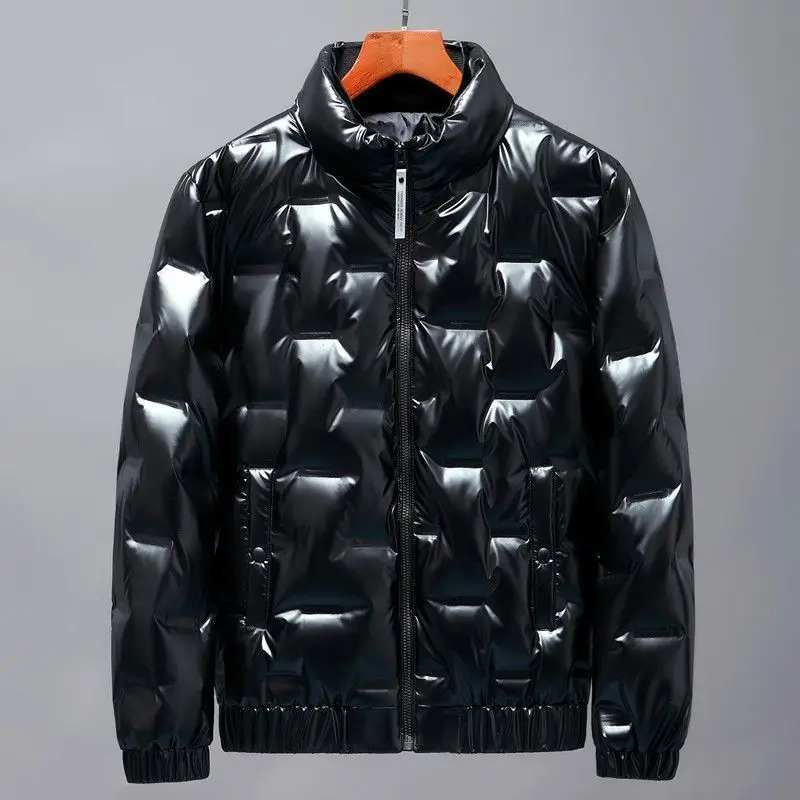 겨울용 브라이트 피니시 다운 코튼 숏 트렌디 한국 스타일 보온 아우터 남성 패션 브랜드 슬림핏 스탠드 칼라 코트