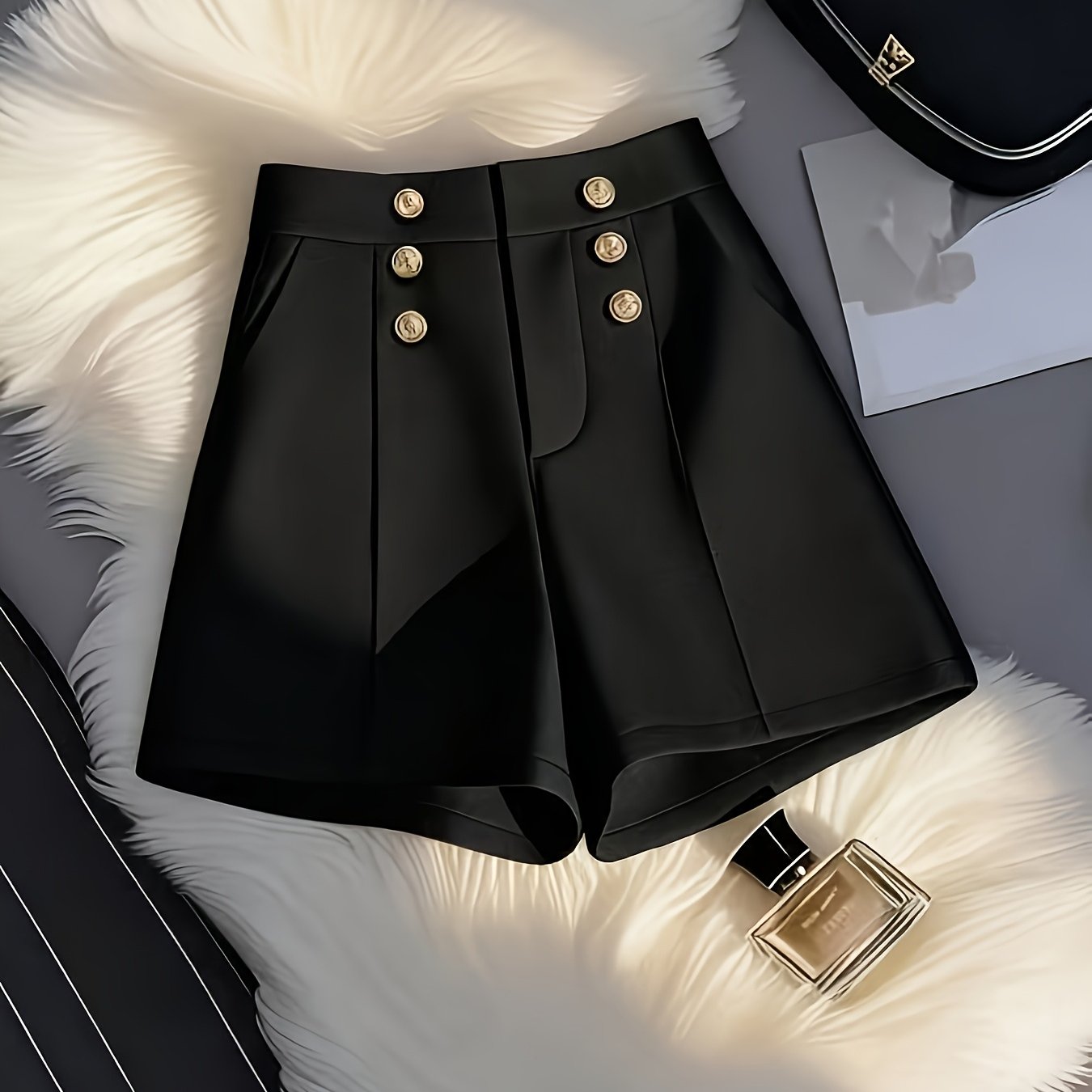 TEMU 캐주얼 단색 반바지 | 봄/여름/가을 시즌, 버튼 디테일