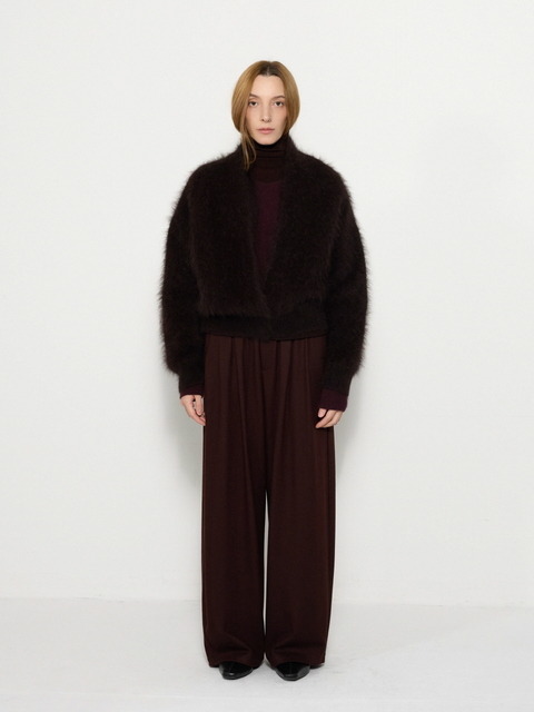 [라 코스모] 플러피 앙고라 라쿤 니트 가디건 - 브라운
