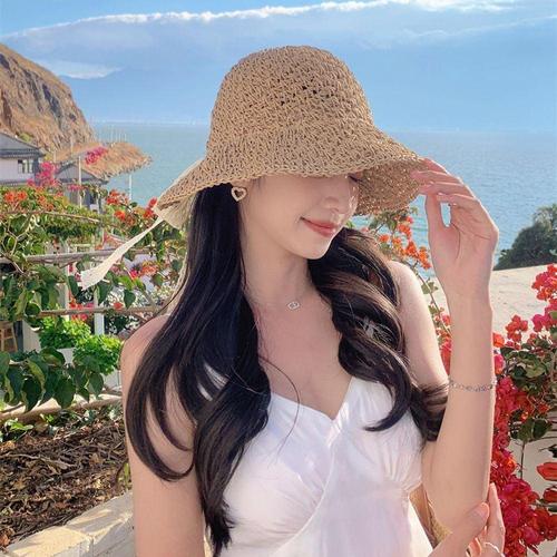 여성 패션 턱끈 밀짚 모자 1P 라피아 휴양지 비치 WFHF51H