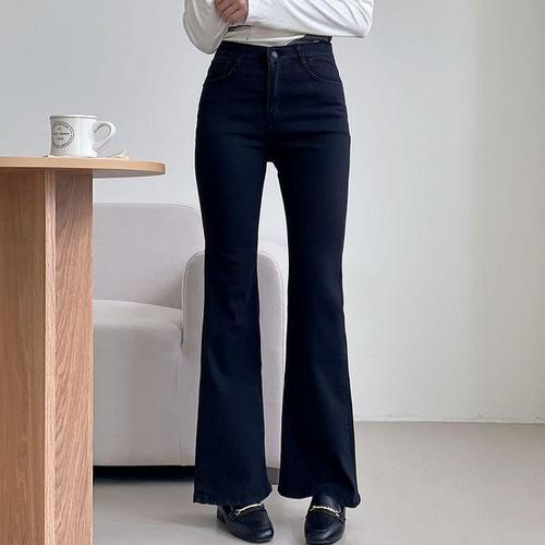 [다잇템]여자 나팔 쫀쫀스판 슬림핏 검정데님 청바지
