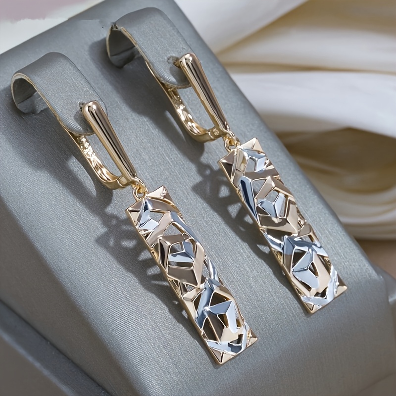 TEMU 금색과 은색의 세련된 기하학적 속이 빈 펜던트 귀걸이 한 쌍, 웨딩 테마의 역할 놀이에 완벽합니다.