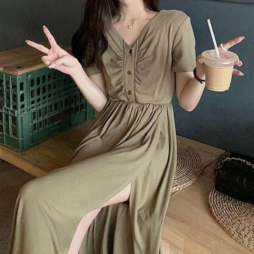 [오너클랜]인기상품 브이넥 랩스타일 뒷밴딩 여성용 원피스 티셔츠형 [WFLLASC_260304]
