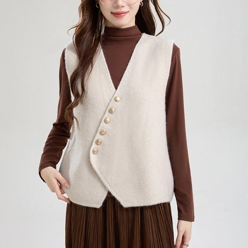 [블랙퀸] 금장버튼 랩 니트조끼 blk004203