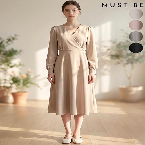 [머스트비]여성 뒷리본 랩스타일 퍼프소매 원피스