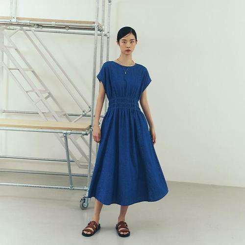 [랩][LAP 랩] 캡소매 데님 스모킹 롱원피스 AR2DO570_DG