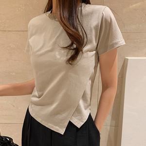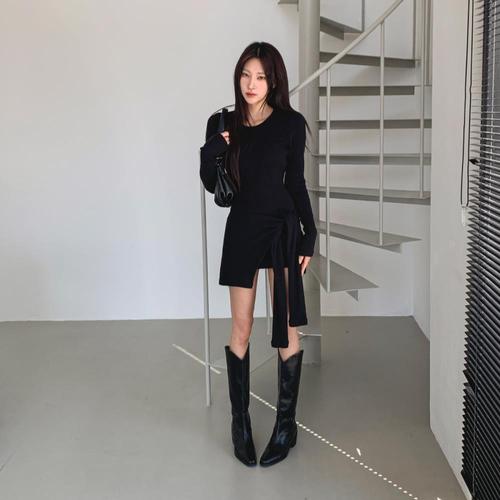 라운드넥 트임 랩 단추 니트 티셔츠 코디 룩