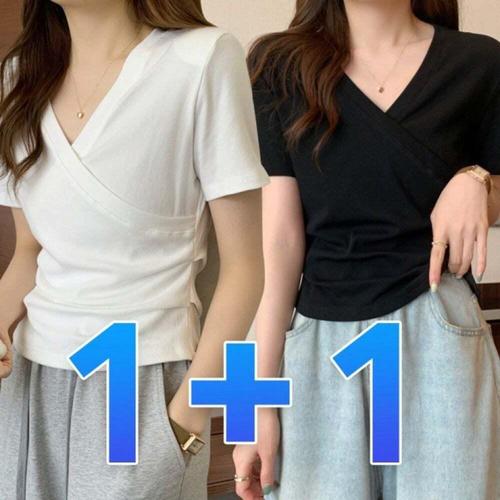 [오너클랜]인기상품 여자용 브이넥 랩 스타일 셔링 반팔 티셔츠 여름상의 [WFLKWQ4_260304]