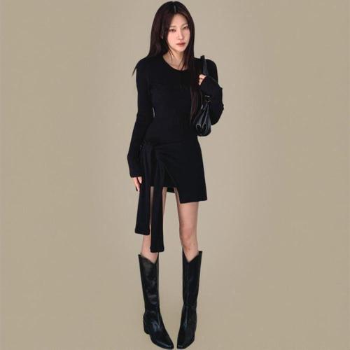 [옷자락]여성 키치무드 골지 랩 레이어드 유넥 긴팔 티셔츠
