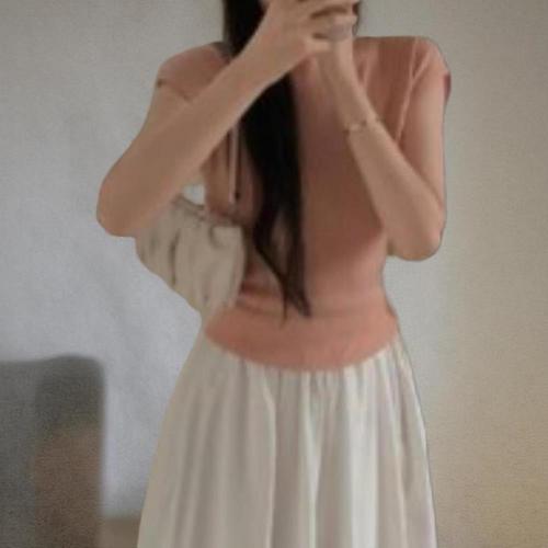 여자 스퀘어넥 러블리 퍼프소매 여름 니트 반팔티셔츠