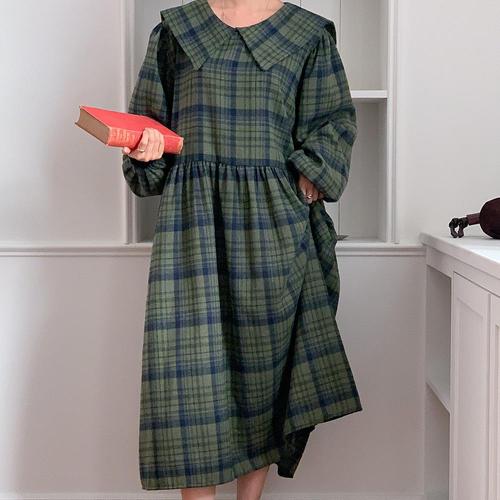 [옷자락] 여자 러블리 박시 임부복 빅카라 체크 퍼프 롱원피스