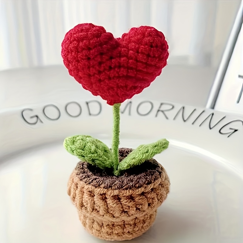 TEMU 2가지 스타일 선택 가능: 귀여운 니트 꽃, 카와이 핸드 크로셰 아이템, 작은 화분 조화, 사무실 및 가정용 자동차 대시보드 장식용, 하트 모양 레드, 5월 5일 졸업식
