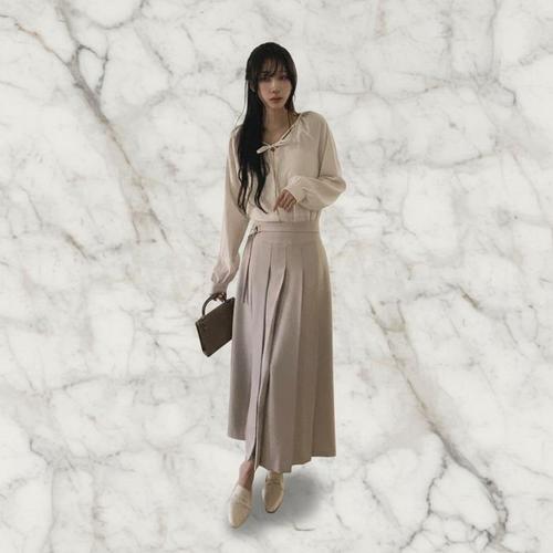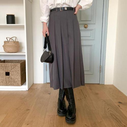 [신상오픈런]여성 미디 길이 오피스 스커트 벨트 핀턱 디자인