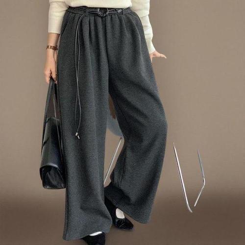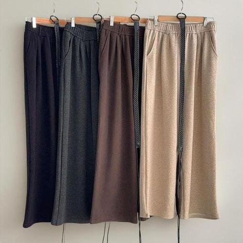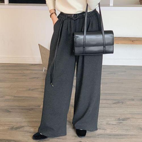 [신상오픈런]여성 겨울 출근 패션 링 벨트 맥시 와이드핏 스판 밴딩 팬츠