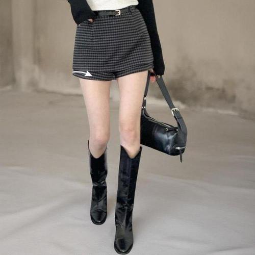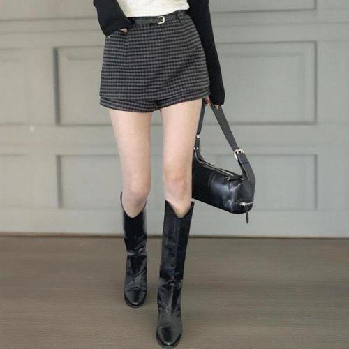 [신상오픈런]여성 체크무늬 미니 스커트 바지 벨트 세트