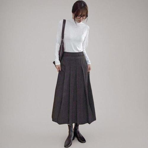 [신상오픈런]여성 버튼 벨트 플리츠 스커트 사이드 트임 디테일