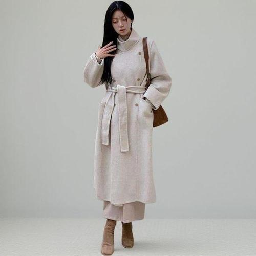 [신상오픈런]여성 수제 하이넥 벨트 롱코트 세트