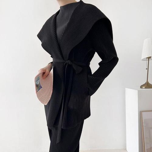 [신상오픈런]여성 도톰 하프 자켓 벨트 플리츠 빅 숄카라 블랙 (45899871)