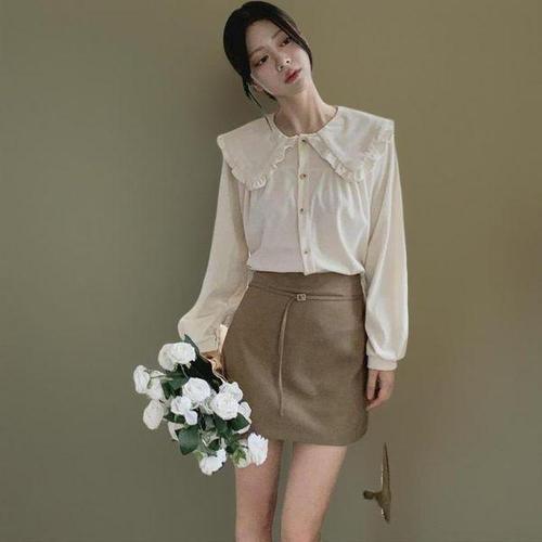 [신상오픈런]여성용 A라인 미니 스커트 벨트 포인트 데이트룩 모직
