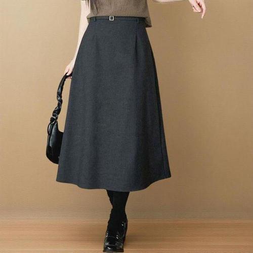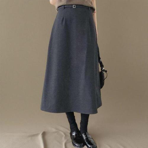 [신상오픈런]여성용 A라인 롱 스커트 벨트 세트 뒷밴딩 모직 치마