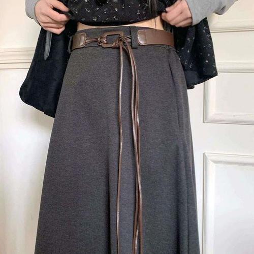 [신상오픈런]여성용 A라인 롱 스커트 가죽벨트 세트 플레어 디자인