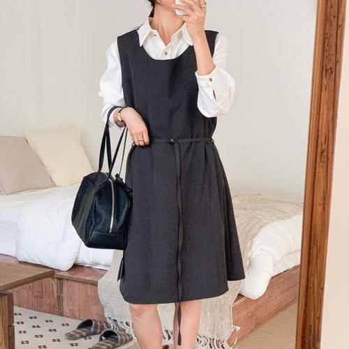 [신상오픈런]여성 하객 드레스 슬림 벨트 민소매 미디 원피스 상견례용 (45899347)
