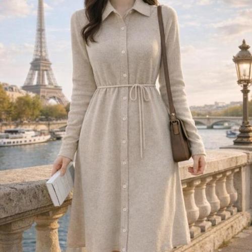 [신상오픈런]여성 카라벨트 니트 원피스 편안한 핏 (46200102)