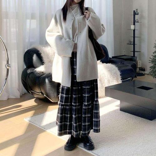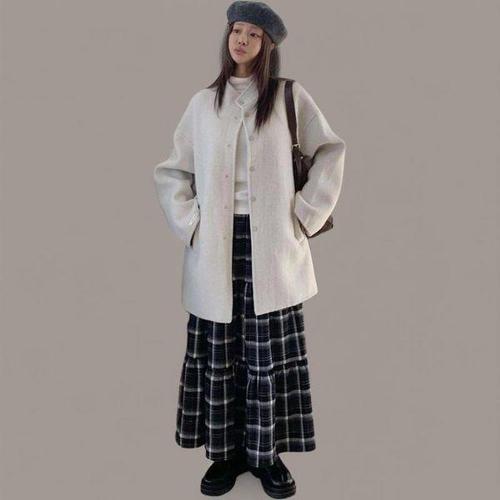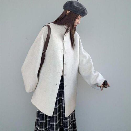 [신상오픈런]여성 루즈핏 미디 울 자켓 하이넥 스냅버튼 디자인