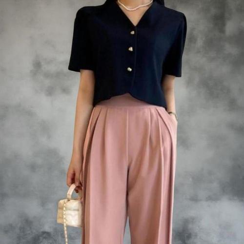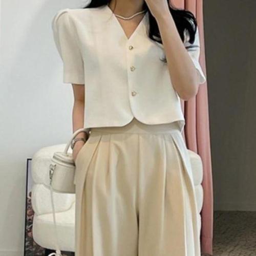 [신상오픈런]여성 하트 디테일 브이넥 퍼프 숄더 반팔 재킷