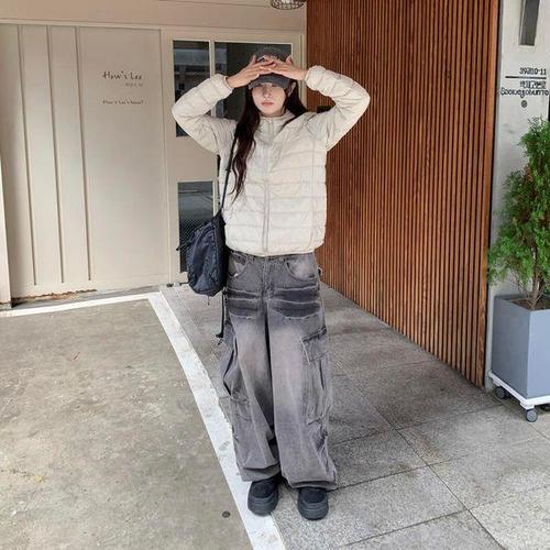 [신상오픈런]여성 루즈핏 세미크롭 워싱 데님 자켓