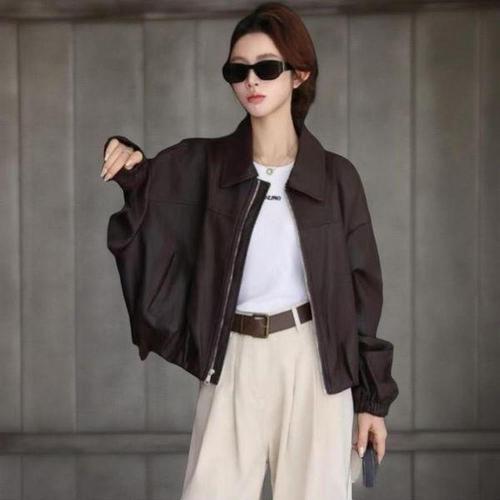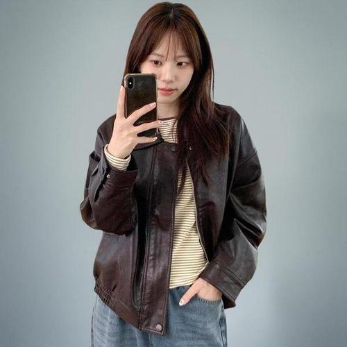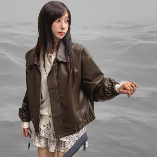 [신상오픈런]여성 루즈핏 카라 블루종 가죽 자켓