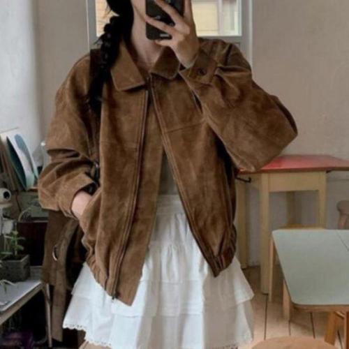 [신상오픈런]여성 키치 스타일 스웨이드 카라 크롭 루즈 자켓