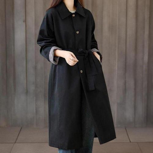 [신상오픈런]여성 클래식 버튼 허리 스트랩 배색 소매 트렌치 자켓