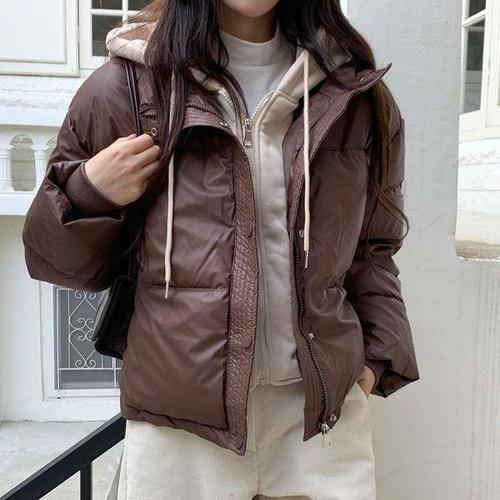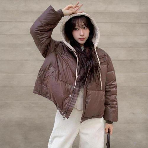 [신상오픈런]여성 배색 후드 짧은 패딩 자켓 소매 시보리