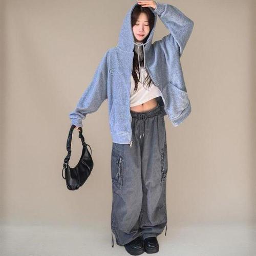 [신상오픈런]여성 후드 집업 자켓 루즈핏 리본 소매 디자인