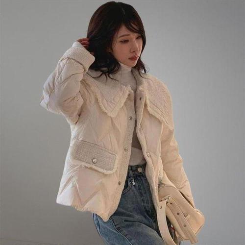 [신상오픈런]여성용 겨울 트위드 카라 포켓 퀼팅 자켓