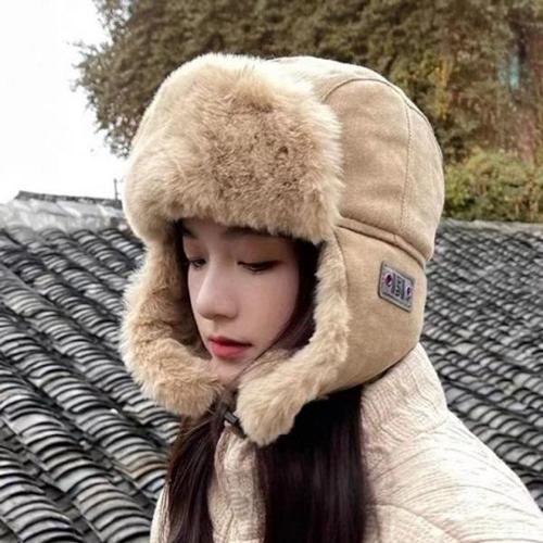 TEMU 여성용 플러시 인조 모피 귀마개 모자 - 부드럽고 두꺼운 겨울 스키 모자, 귀 덮개 포함, 따뜻한 추운 날씨 야외용 모자 (스키, 스노ーボ드, 캐주얼 웨어용), 겨울 스키 장비, 스타일리시한 겨울 액세서리, 부드러운 질감
