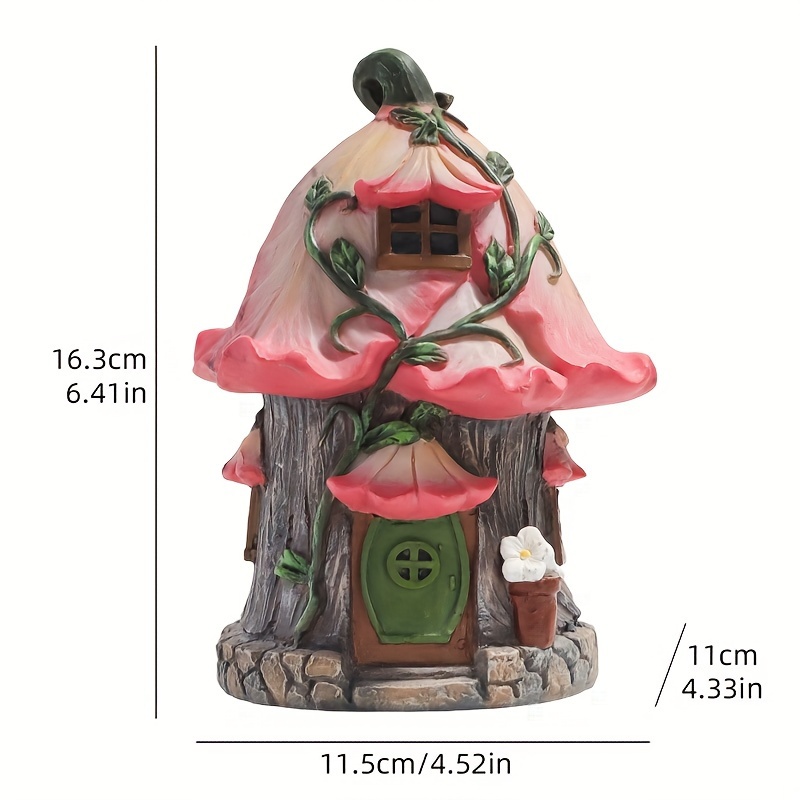TEMU 수지 버섯 집 장식, 만화 정원 미니어처, 수제 요정 집 장식, 전기 또는 배터리 필요 없음, 발코니 및 조경 장식에 이상적