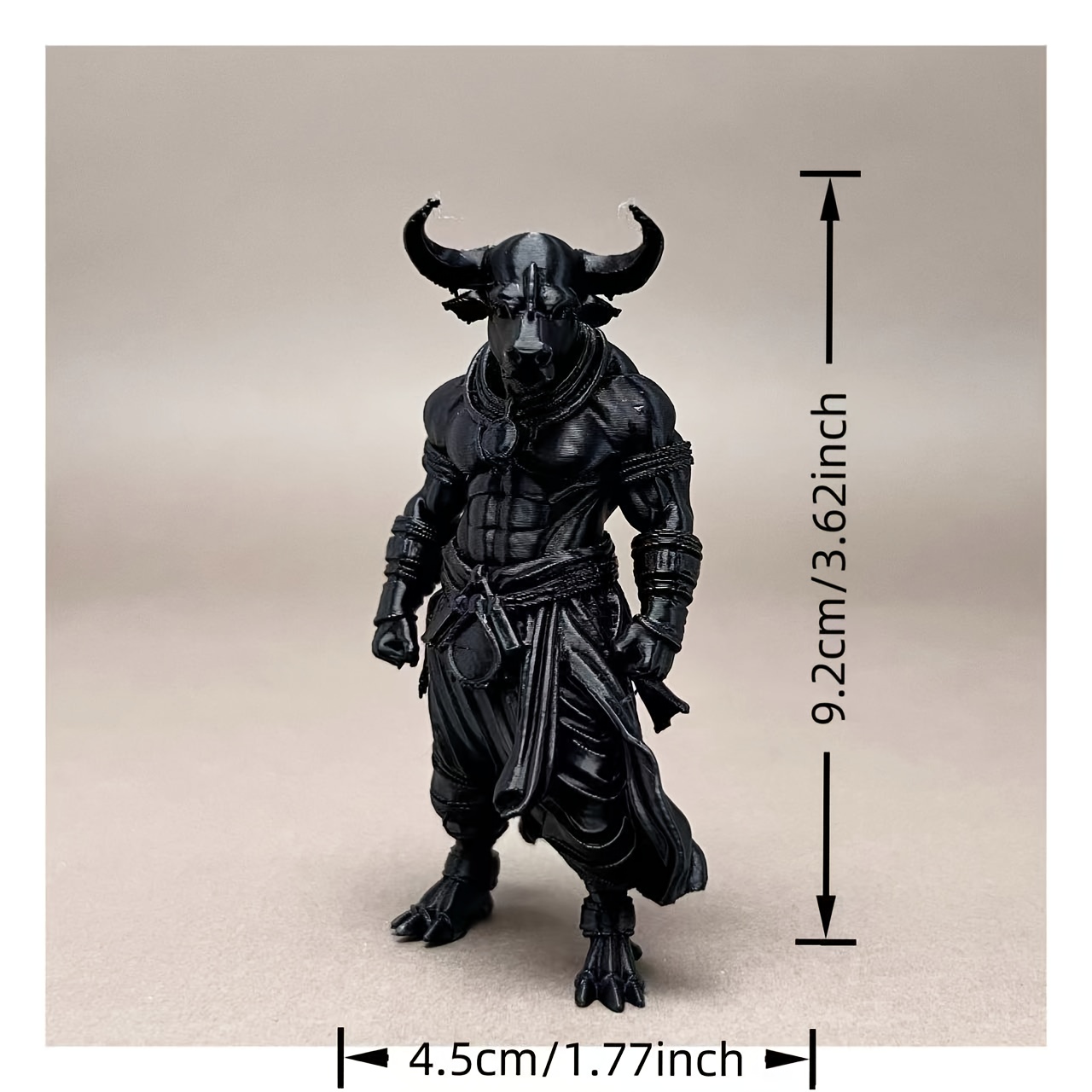 TEMU 1개 3D 프린트 황소 전사 피규어 - 골드 악센트가 있는 현실적인 블랙 플라스틱 조각상, 상세한 갑옷 & 뿔, 할로윈, 크리스마스, 데이 장식에 완벽 - 실내/외부 사용, 책장, 선반, 사무실 책상 장식, 황소 장식|데스크테리어