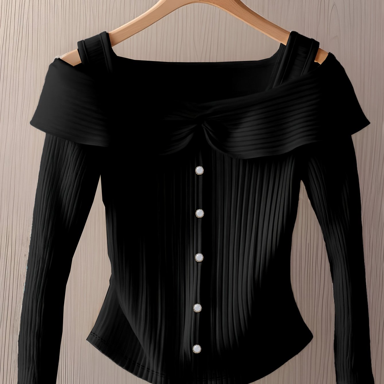 TEMU 여성용 프렌치 스타일 시크 크로스 프론트 블라우스 - 긴 소매, 라운드 넥, 신축성 및 단색, 봄/가을에 완벽, 다용도 레이어링 피스, 봄 패션 탑 | 시크한 블라우스 | 중간 탄력