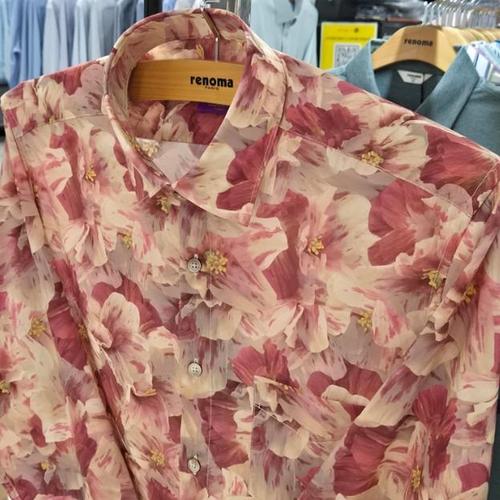 [레노마셔츠]일반핏/긴소매/면100/플라워 프린트 셔츠 RLFOR1203 PK_US