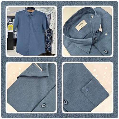 [레노마셔츠]일반핏/반소매/얇고/구김 없는/카라-스냅 버튼/ 여름 셔츠 RPUSG1601 BU_US