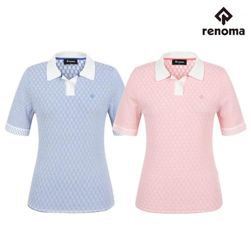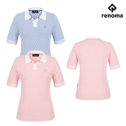 레노마 골프 여성 솔리드 스트레치 카라 배색 반팔 티셔츠 TYO/6119