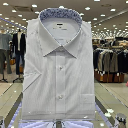 갤러리아_레노마셔츠(반소매 슬림핏)플레인 스트레치 쿨 스트라이프 스